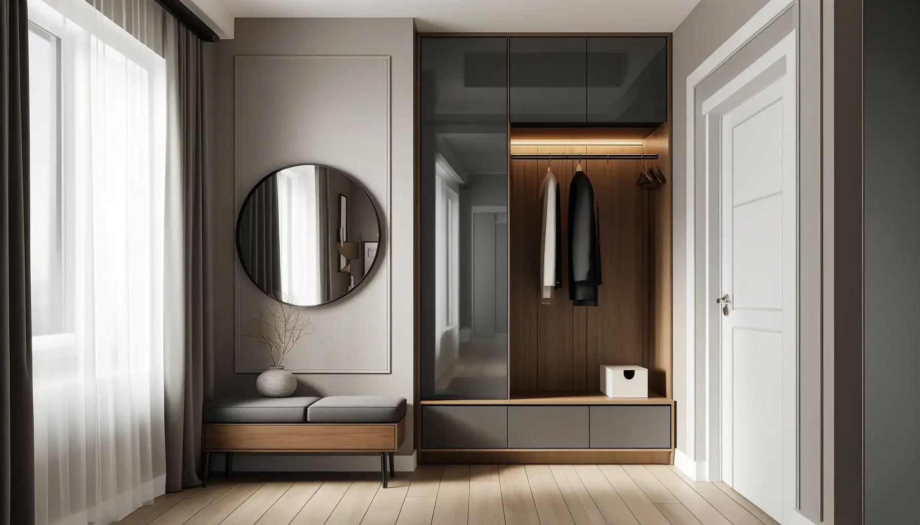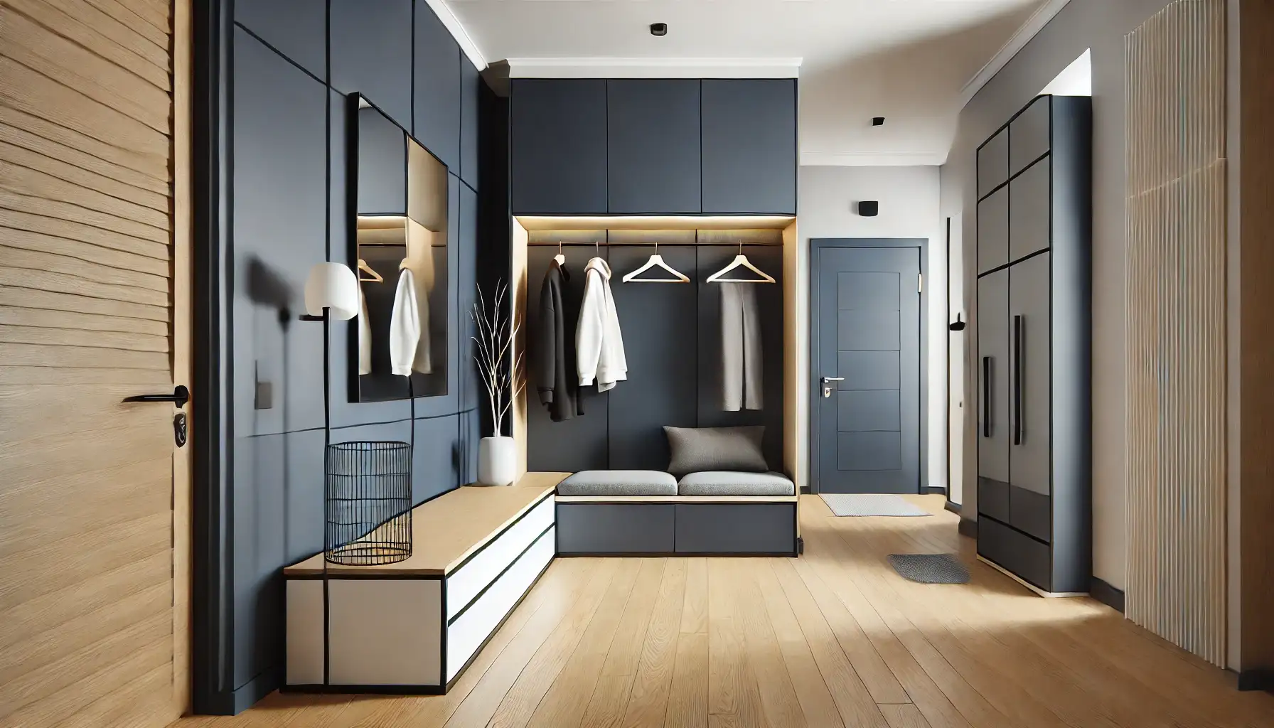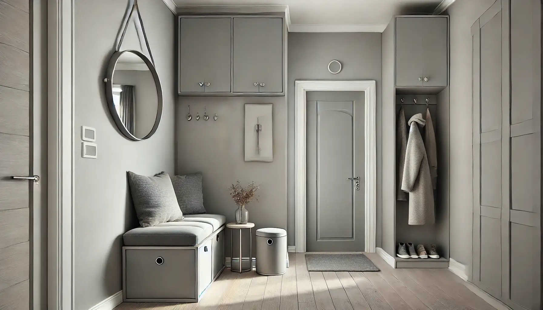 Dulapurile compacte, cuierele și băncile integrate ajută la menținerea unui spațiu bine organizat, indiferent de dimensiunea holului.