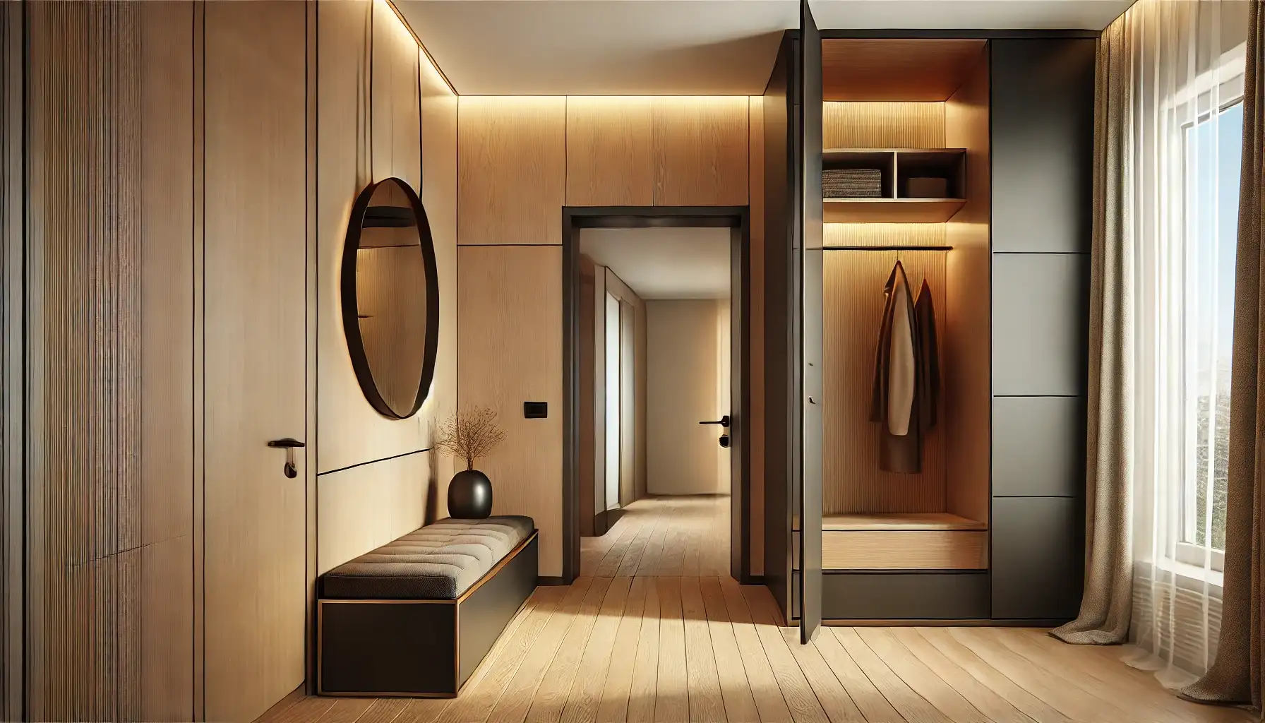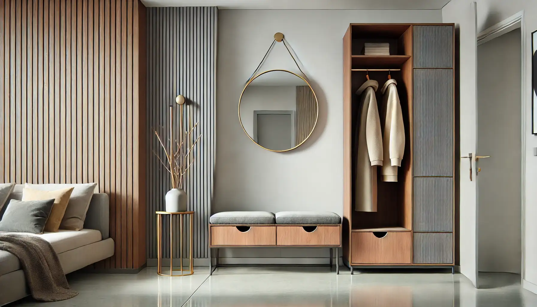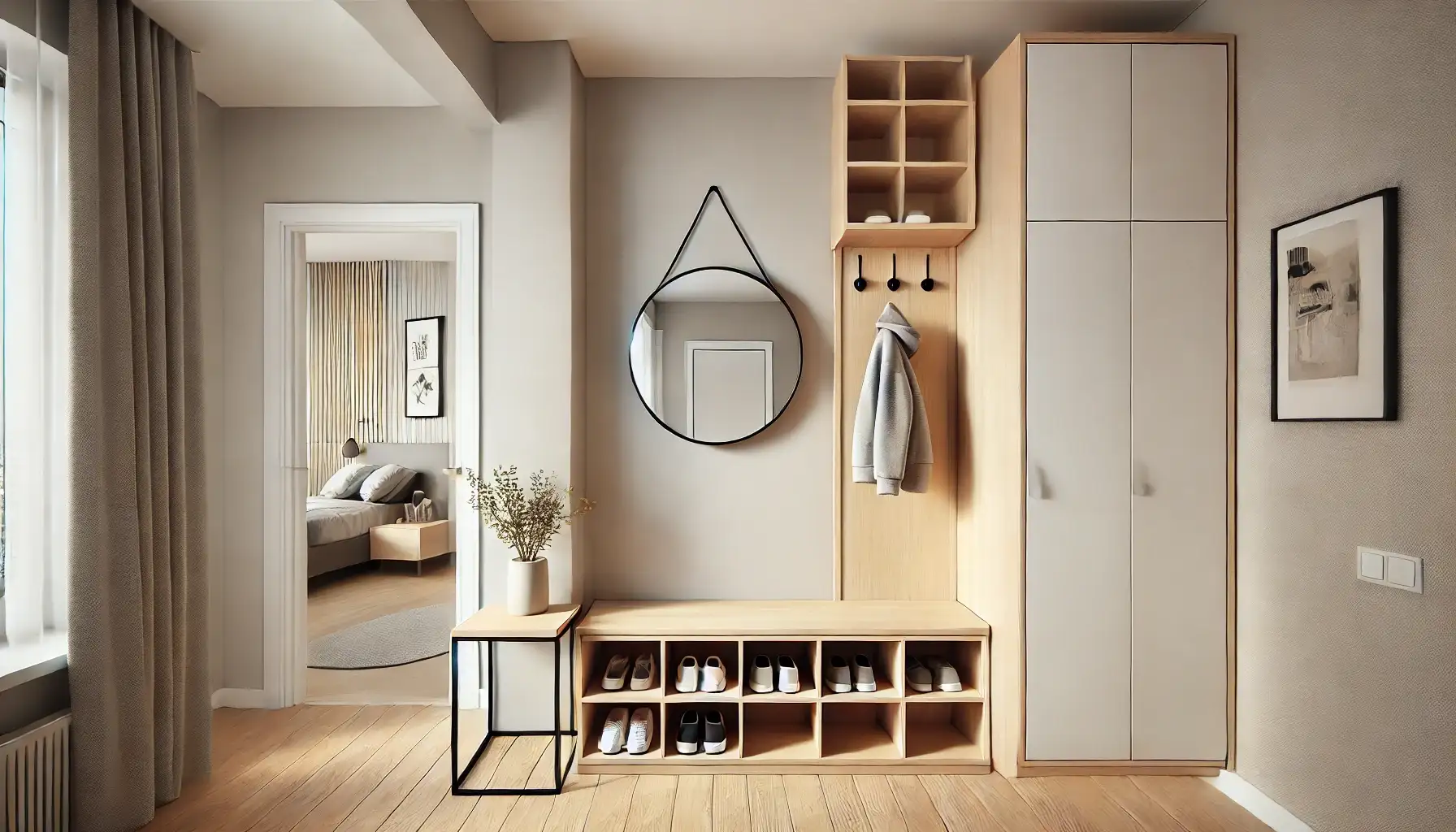 Dulapurile compacte, cuierele și băncile integrate ajută la menținerea unui spațiu bine organizat, indiferent de dimensiunea holului.