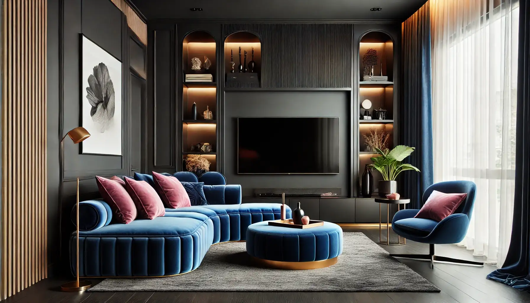 Mobilierul este proiectat să îmbine confortul cu organizarea, oferind spațiu pentru depozitare discretă, rafturi pentru obiecte decorative și soluții media personalizate.