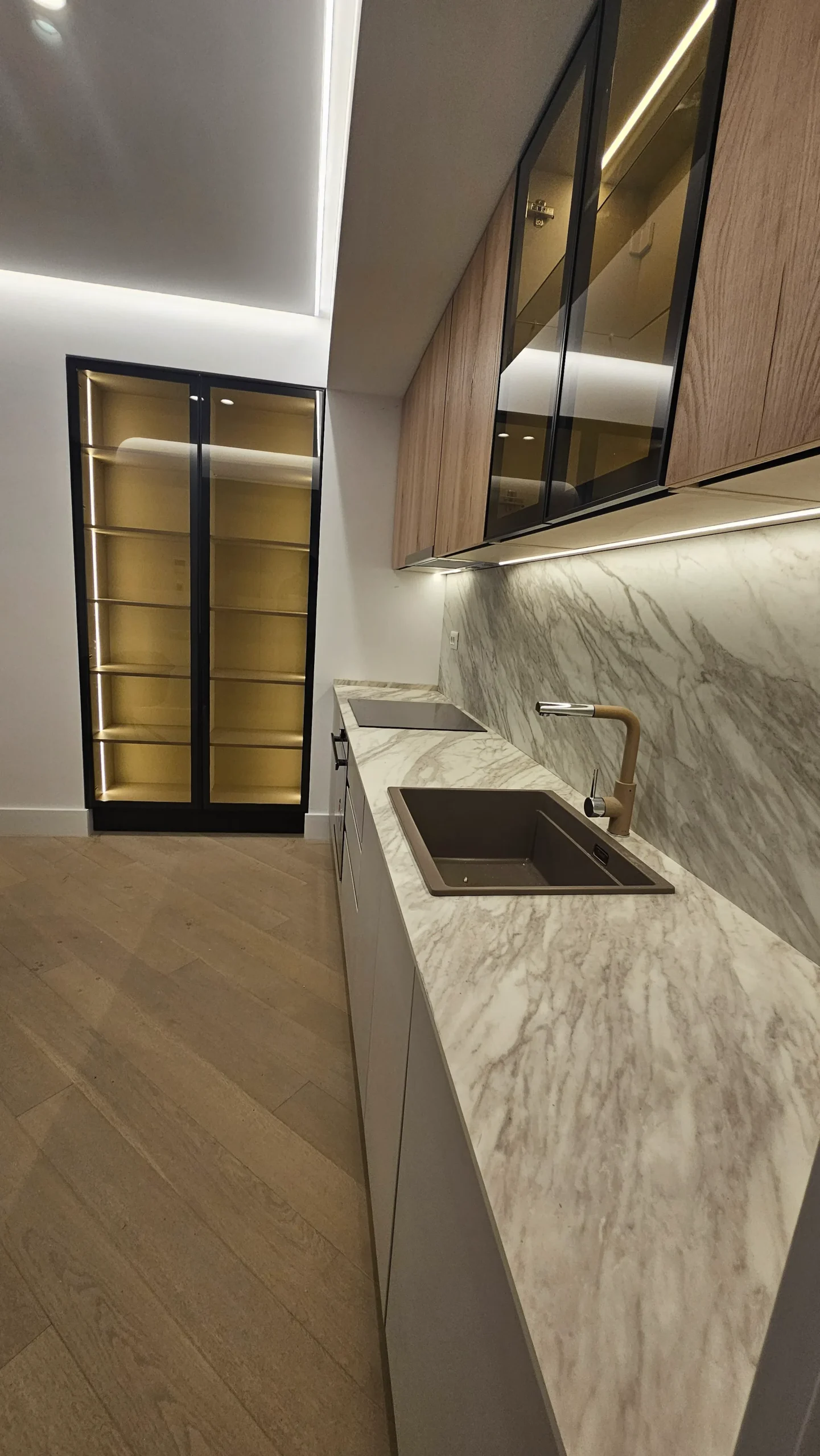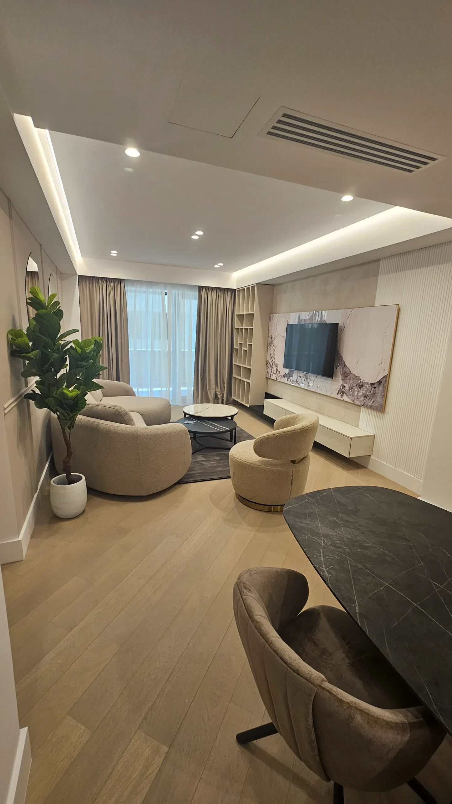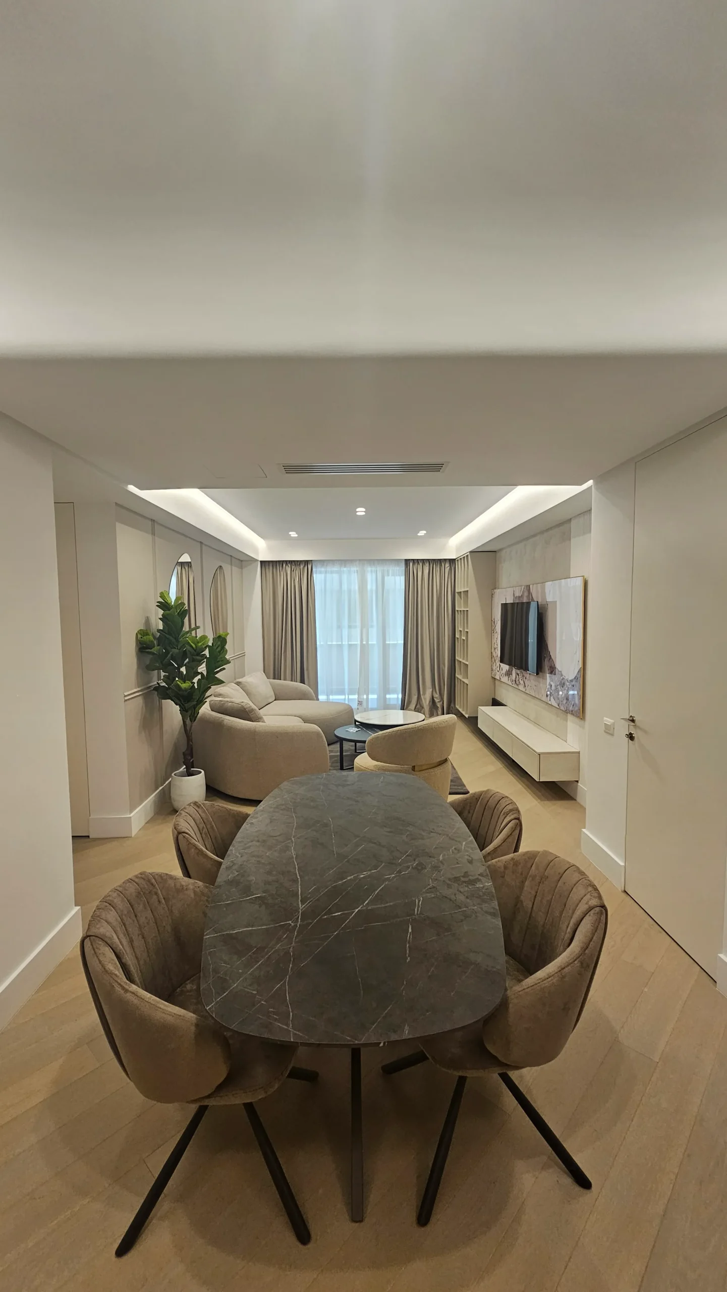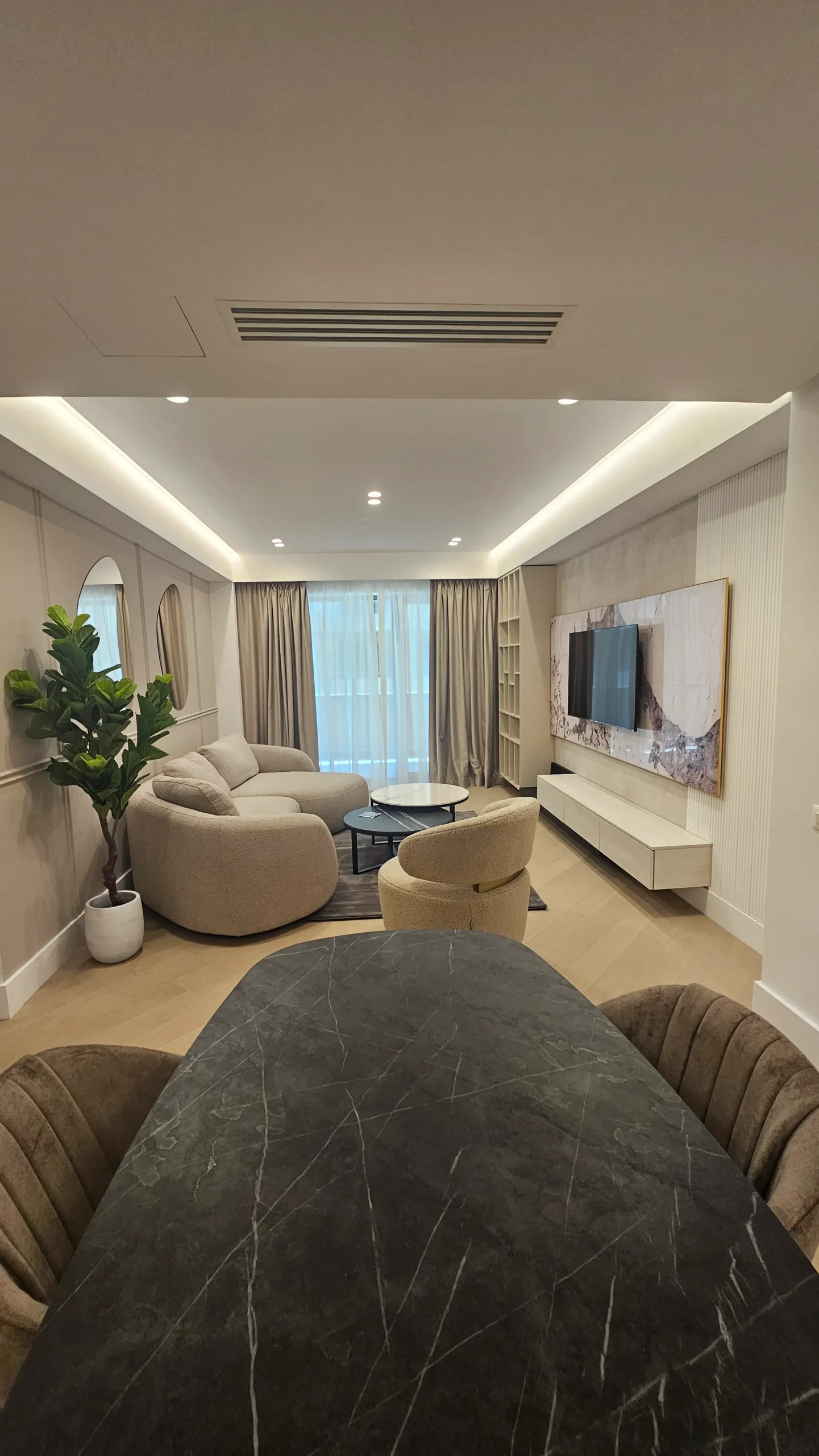 Situat într-unul dintre cele mai exclusiviste ansambluri rezidențiale din nordul Bucureștiului – Cortina126, acest apartament cu 3 camere se remarcă printr-un concept de design interior modern, curat, bazat pe linii fluide, texturi calde și finisaje high-end, care oferă un echilibru perfect între estetică și funcționalitate.