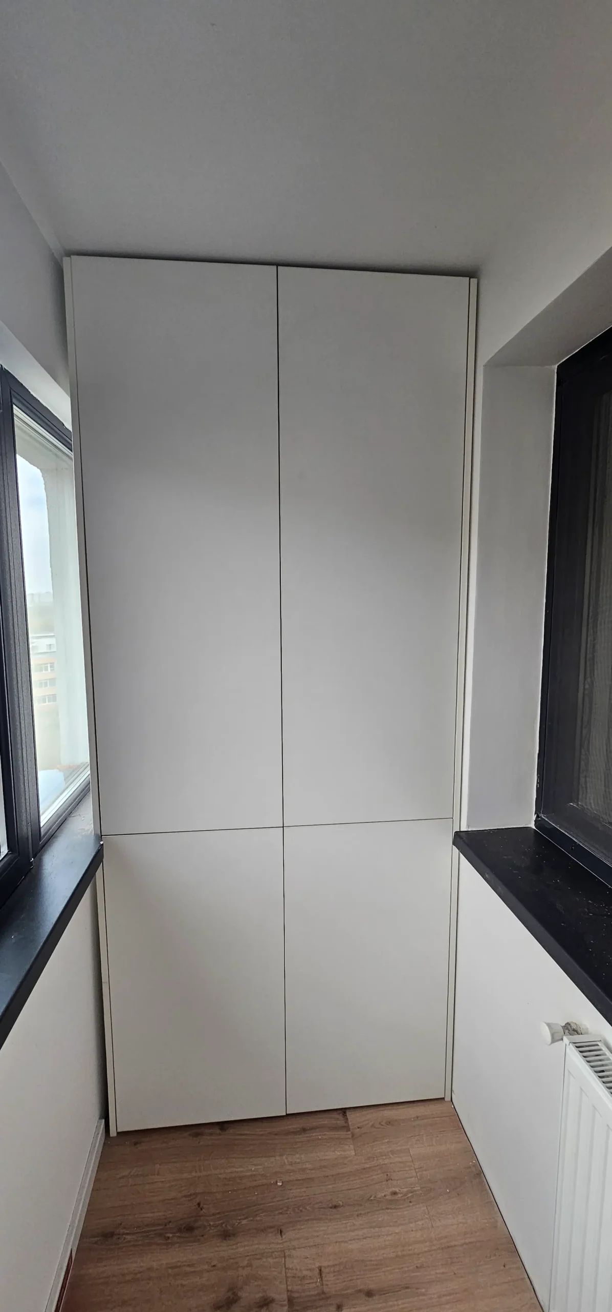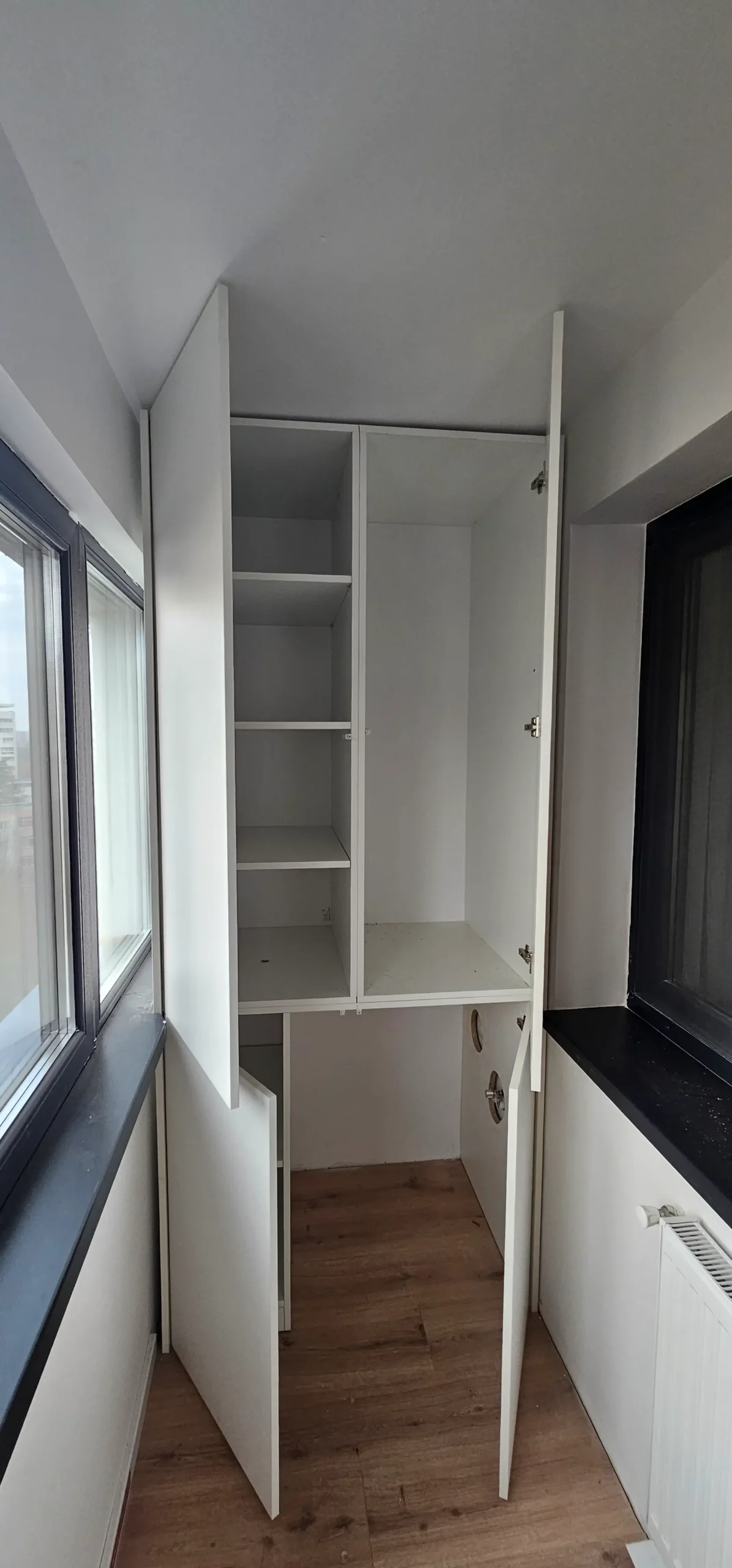 Balconul este un spațiu multifuncțional bine optimizat, oferind un dulap inteligent integrat, conceput pentru mascarea mașinii de spălat rufe și depozitare suplimentară. Ferestrele mari permit pătrunderea luminii naturale, creând o atmosferă luminoasă și aerisită. Finisajele moderne îl fac potrivit atât pentru relaxare, cât și pentru scopuri utilitare, fiind un element esențial în organizarea eficientă a apartamentului.