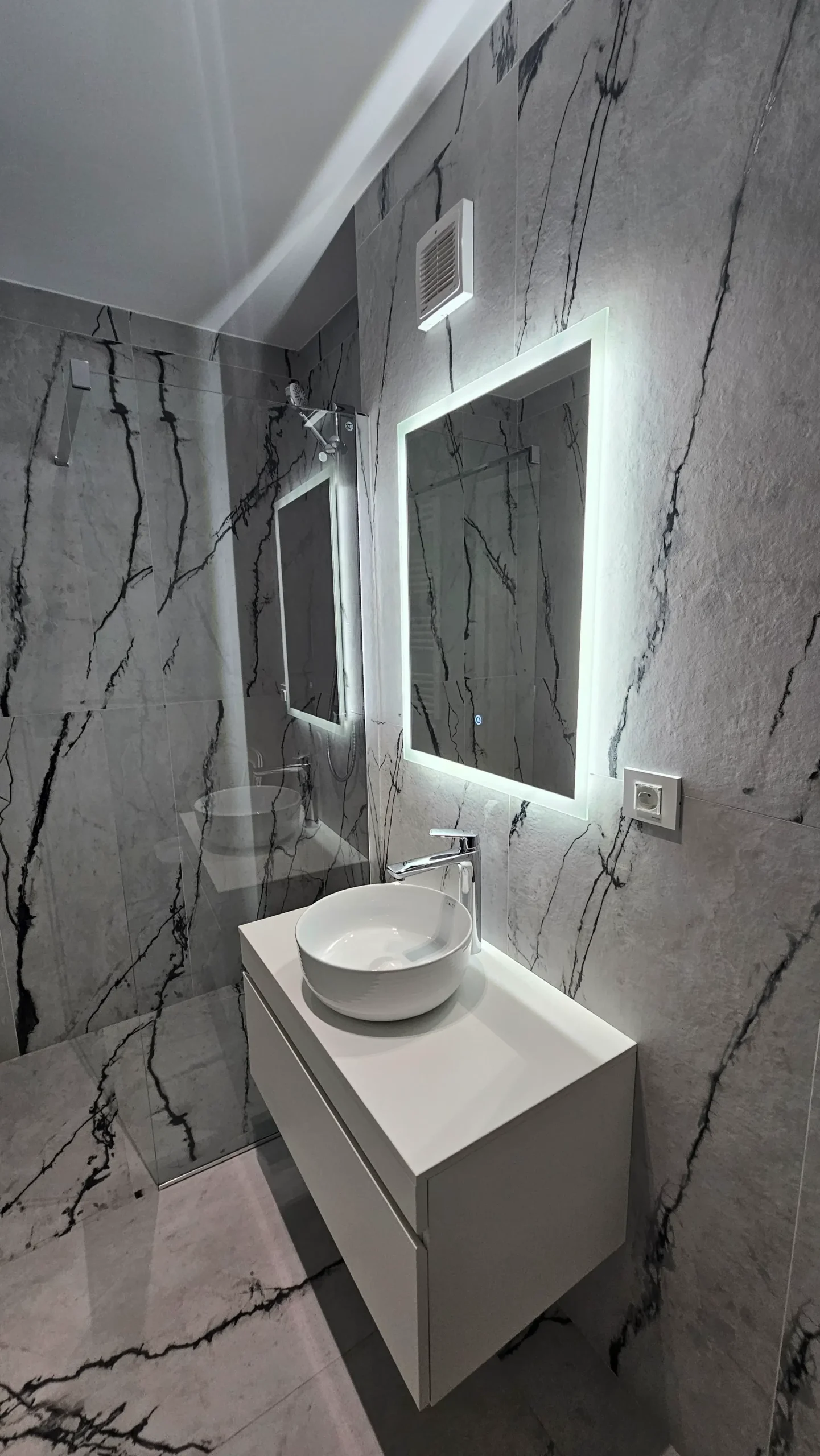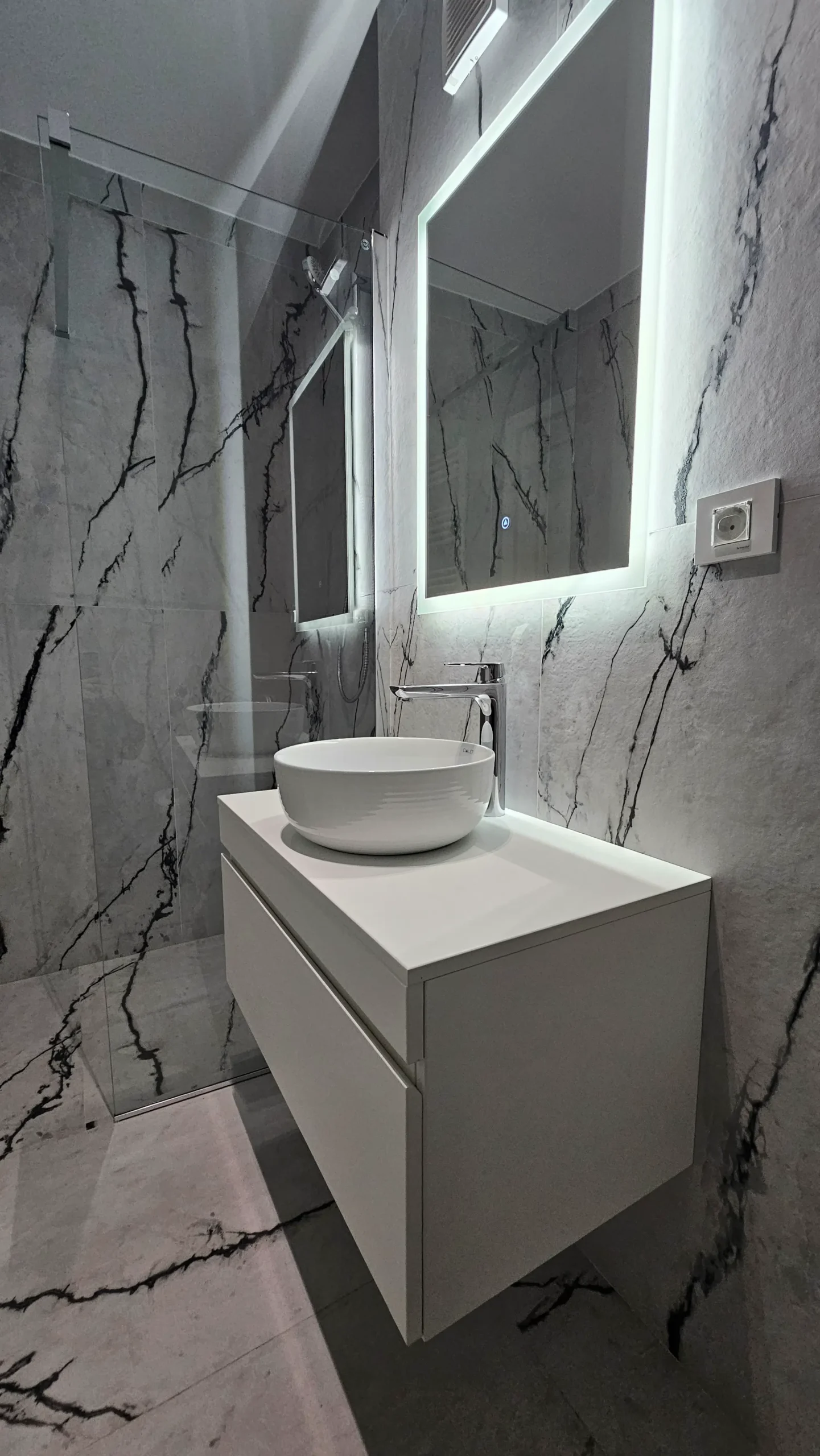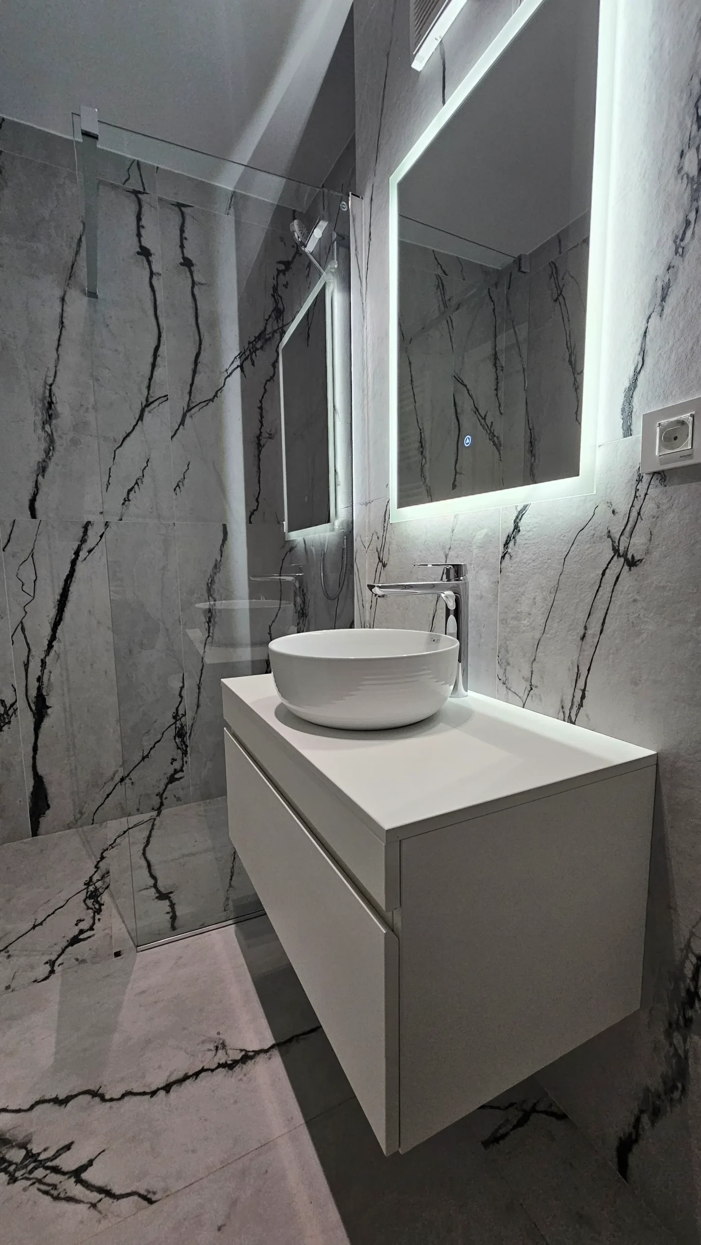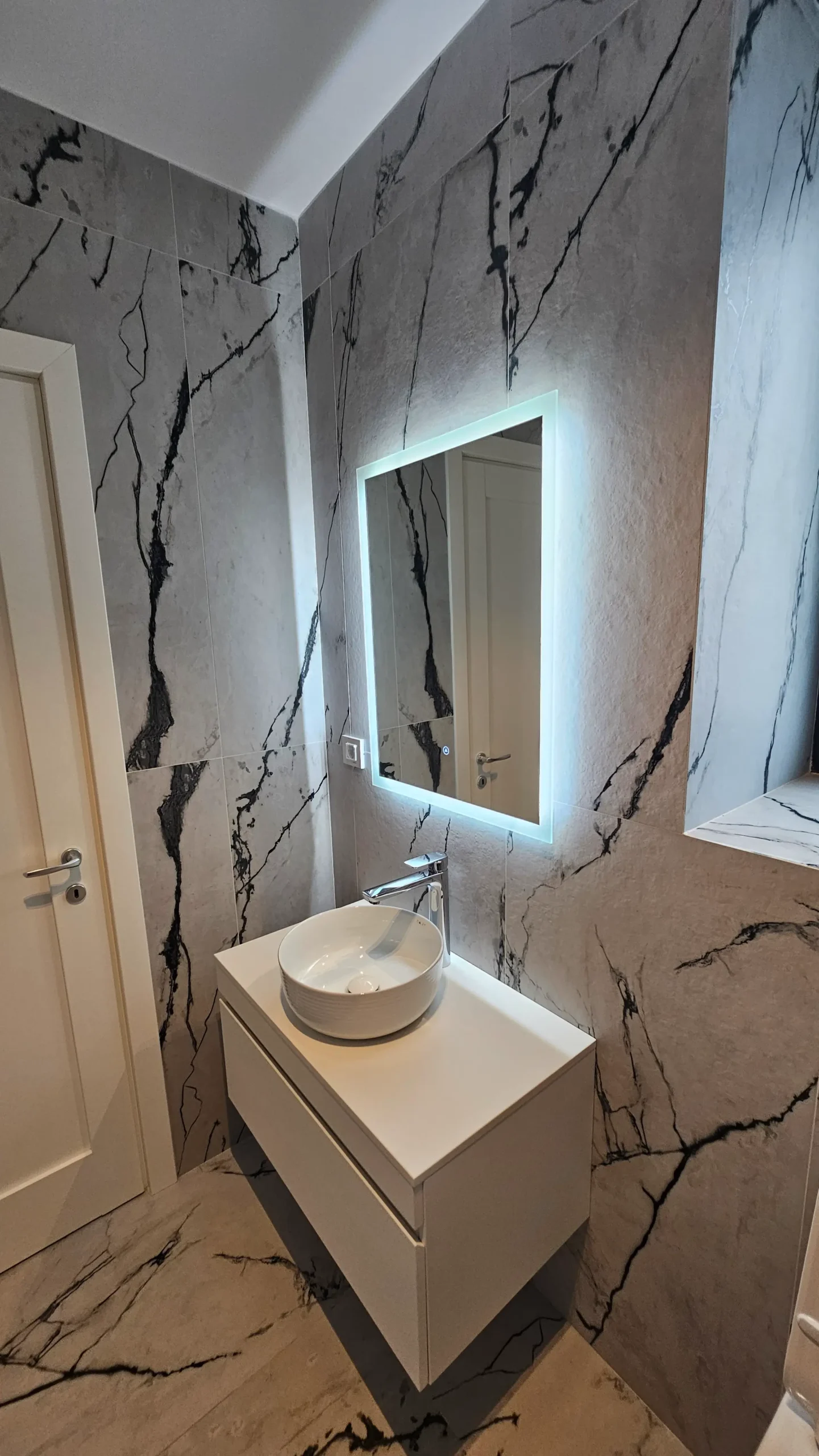 Dresssing finisaj mat gri deschis, care se integrează perfect în peretele lateral.