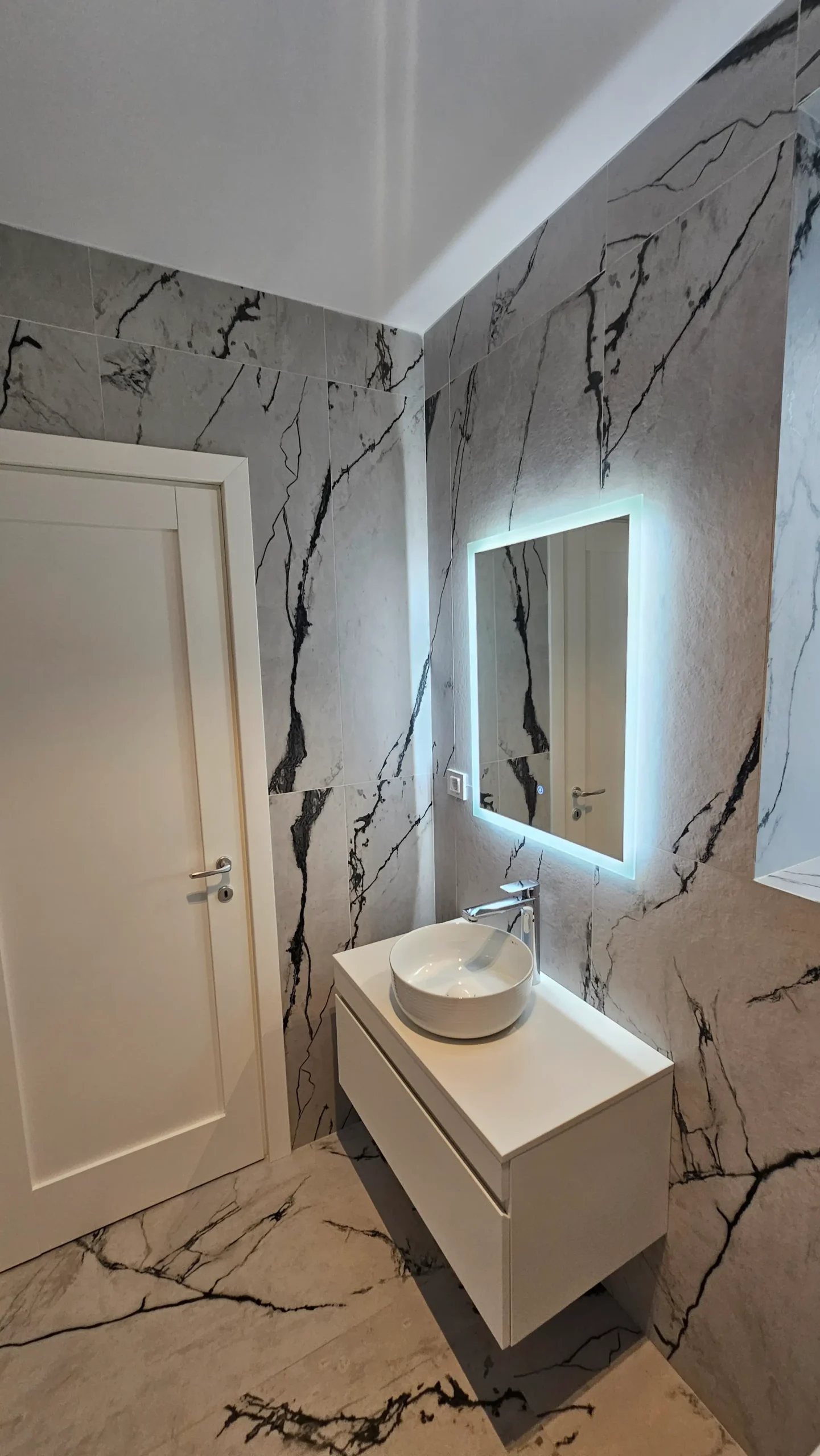 2. Noptiere albe cu aspect de marmură: