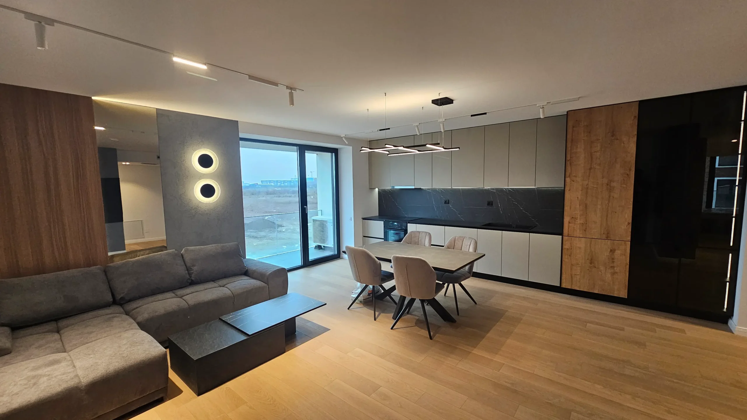 Acest apartament reflectă un stil modern, elegant și practic, cu un accent puternic pe minimalism și funcționalitate. Mobilierul este bine proporționat și perfect integrat în fiecare încăpere, oferind un echilibru între estetică și confort.