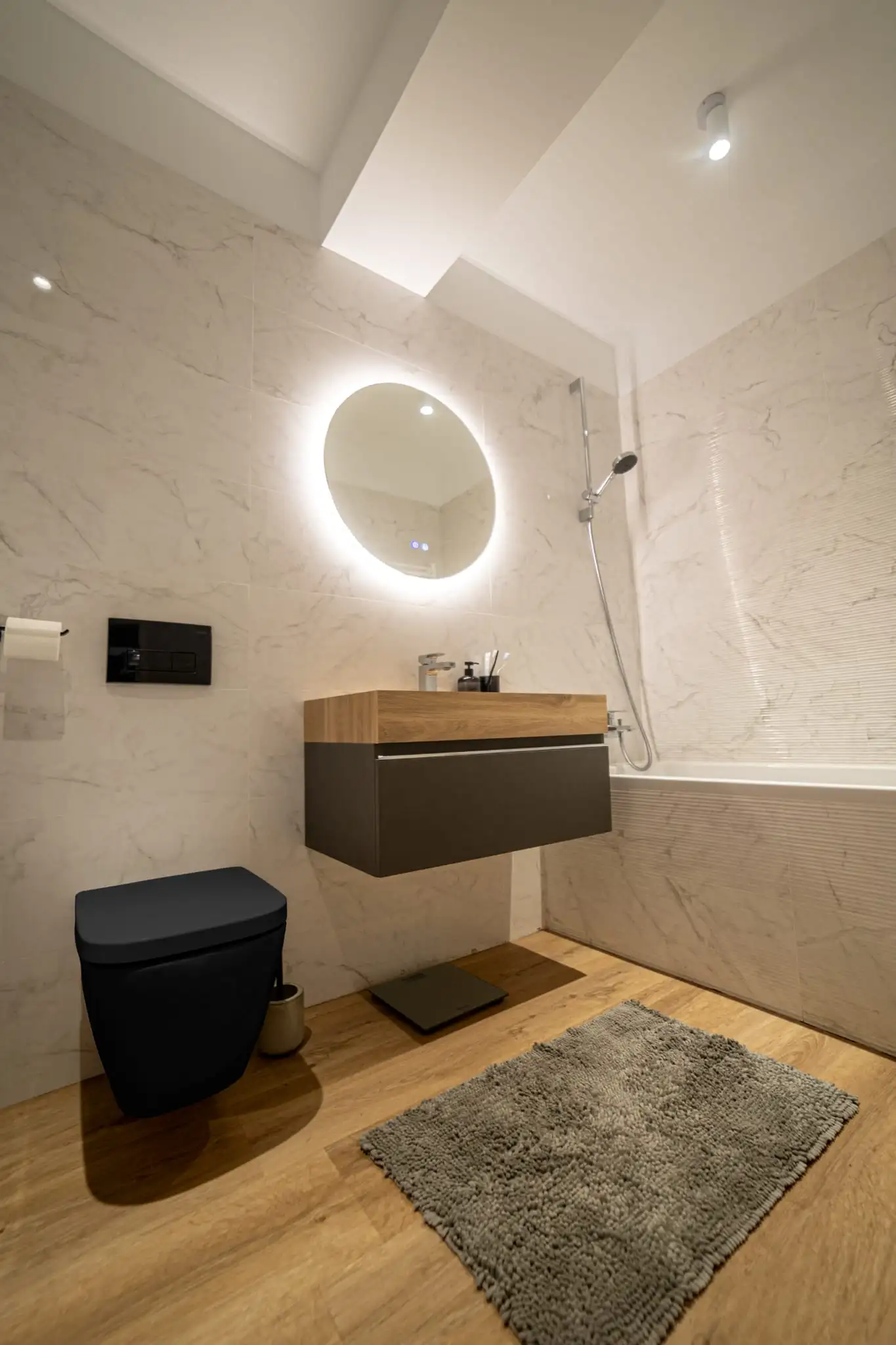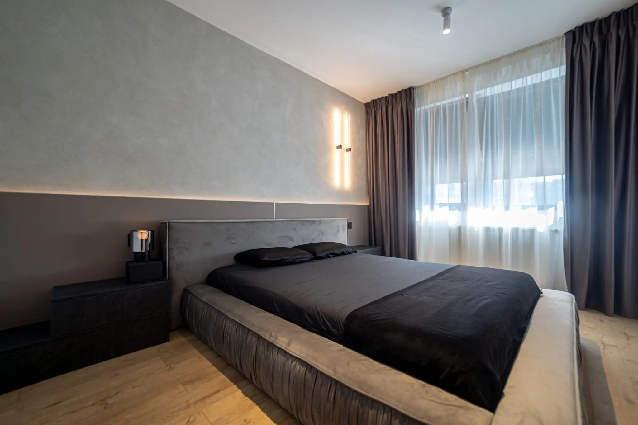 Mobilierul acestui apartament din Residence 5 se remarcă printr-un design modern și funcțional, menit să creeze un echilibru perfect între estetică și confort. Fiecare piesă este selectată cu grijă, utilizând materiale de calitate superioară și finisaje contemporane.