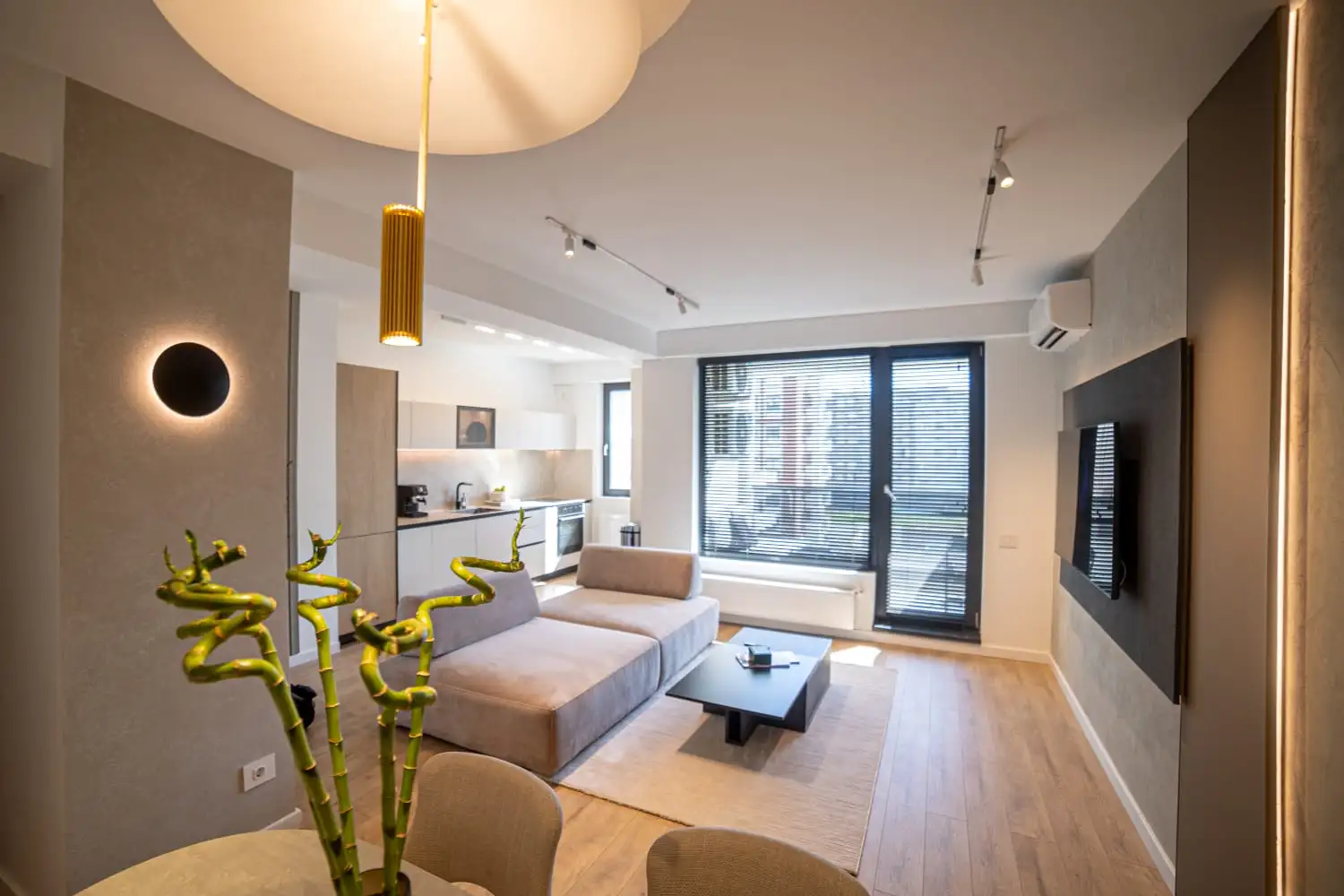Acest mobilier este gândit să combine estetica modernă cu utilitatea, transformând apartamentul într-un spațiu primitor, ideal pentru viața cotidiană.