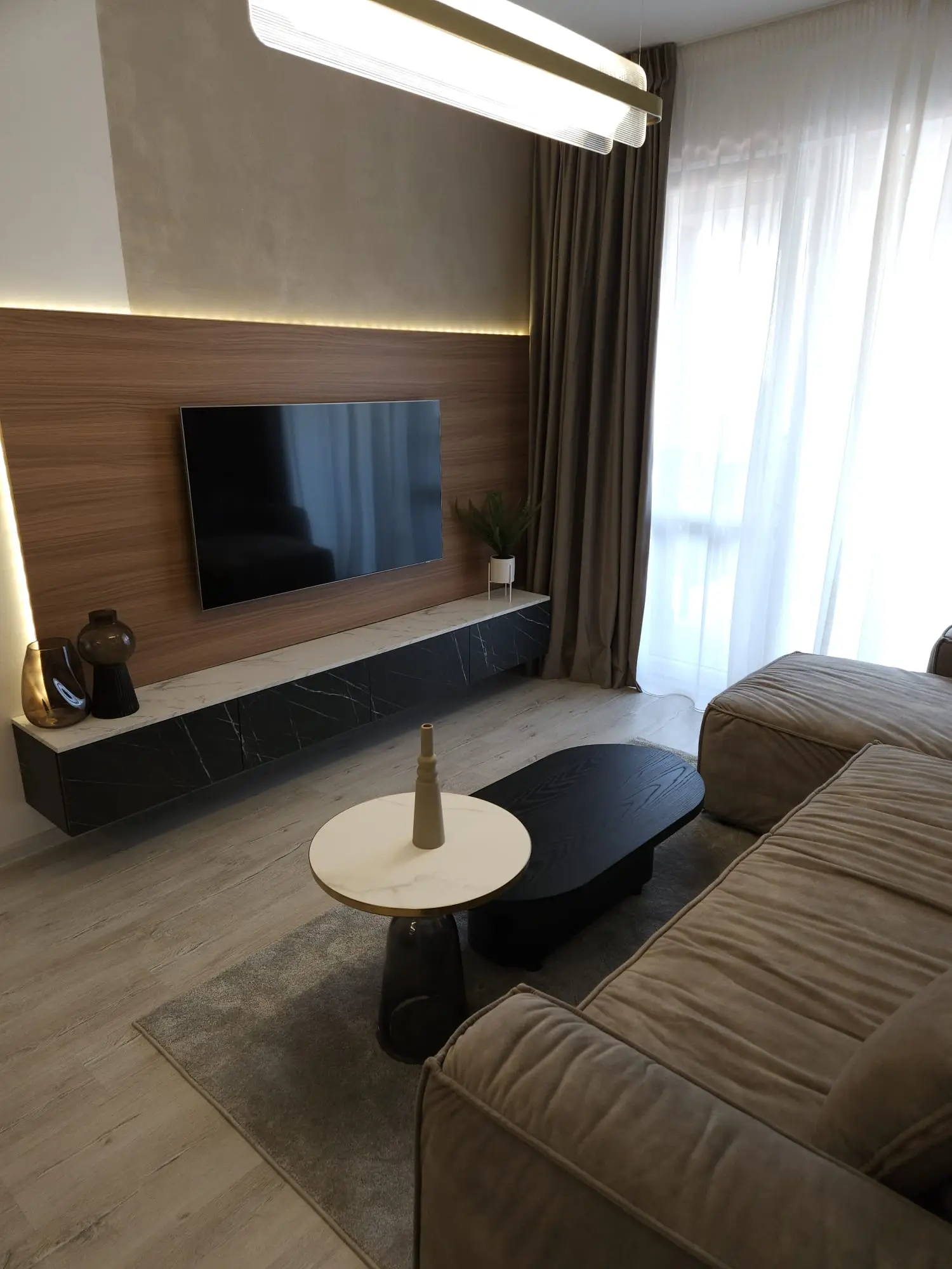 Situat în prestigiosul Residence Sofia, acest apartament de două camere reprezintă o combinație armonioasă între estetică modernă, materiale premium și soluții inteligente de optimizare a spațiului. ETREE, expert în mobilier personalizat, a realizat un design rafinat, gândit pentru confort maxim și o experiență vizuală excepțională.