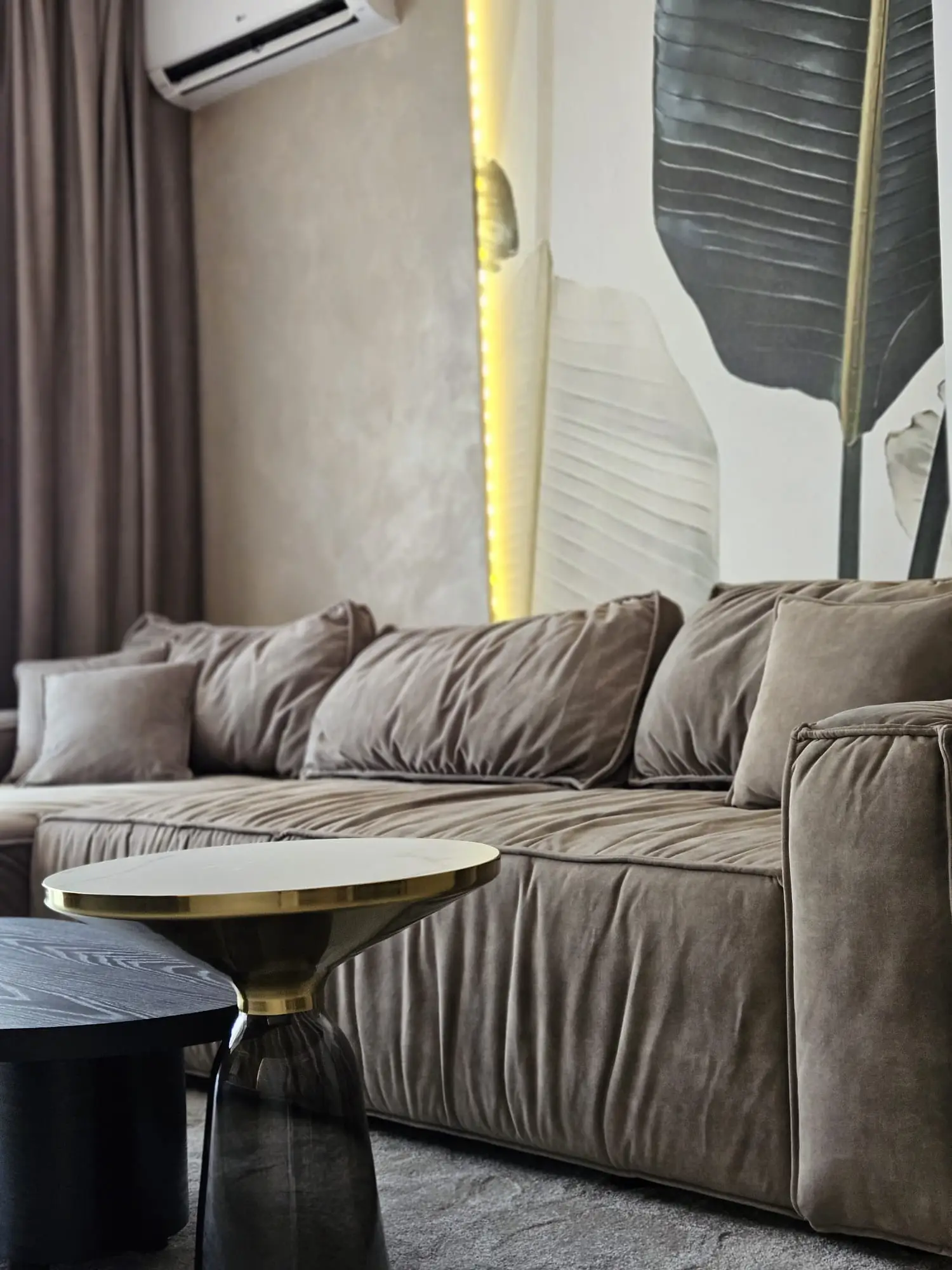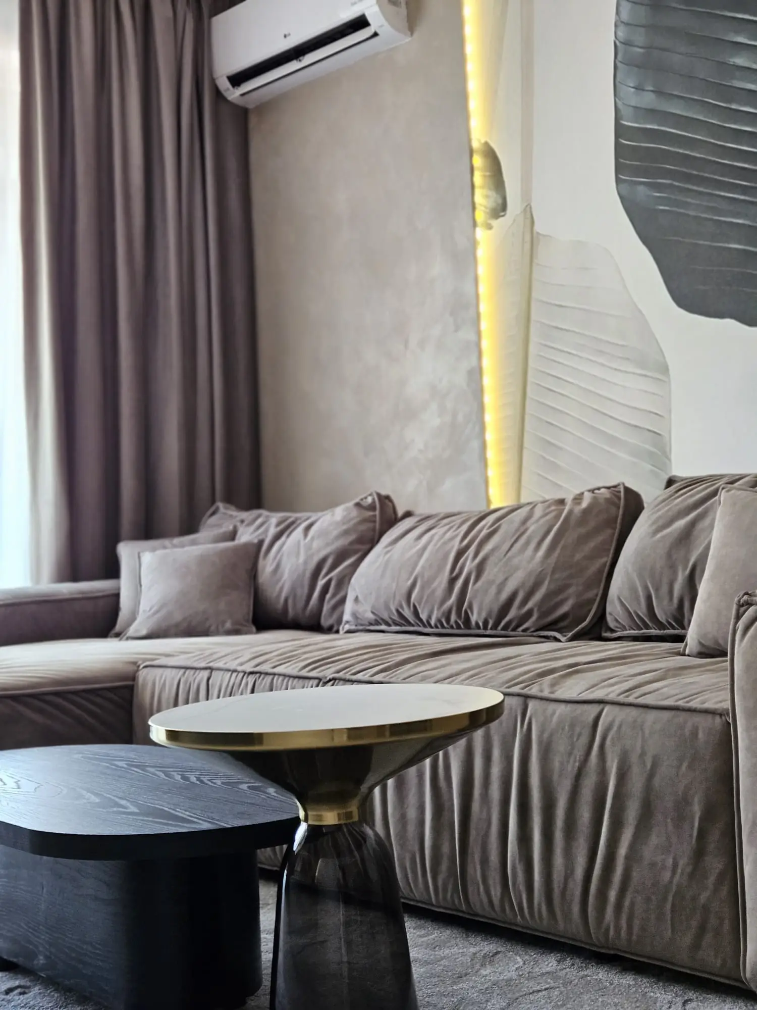 Livingul este amenajat într-un stil contemporan, îmbinând confortul cu un design premium.